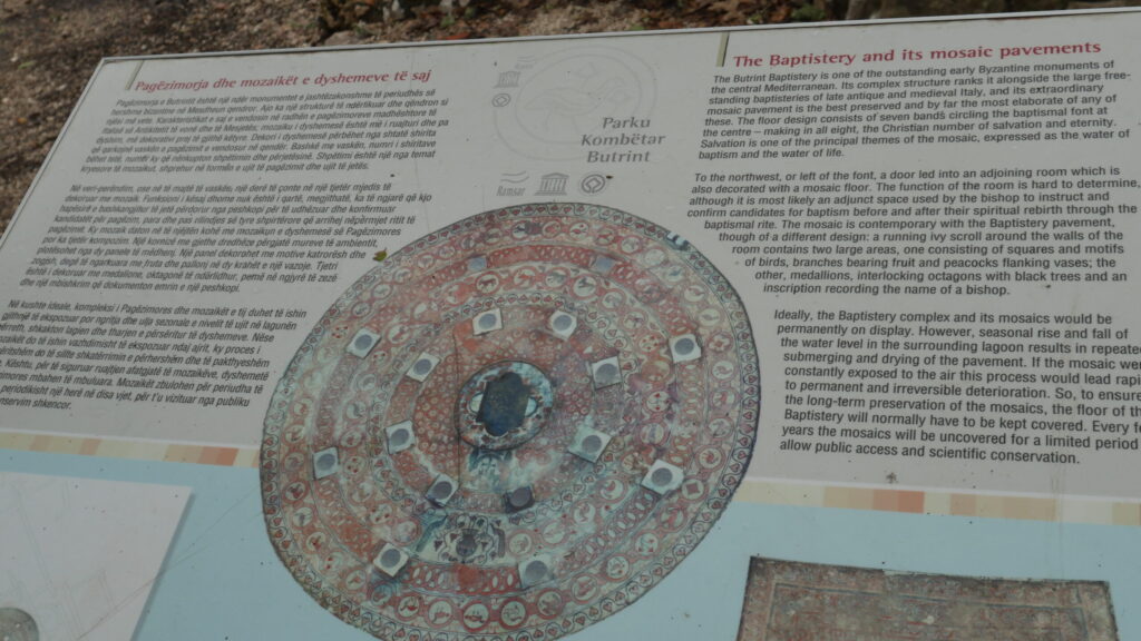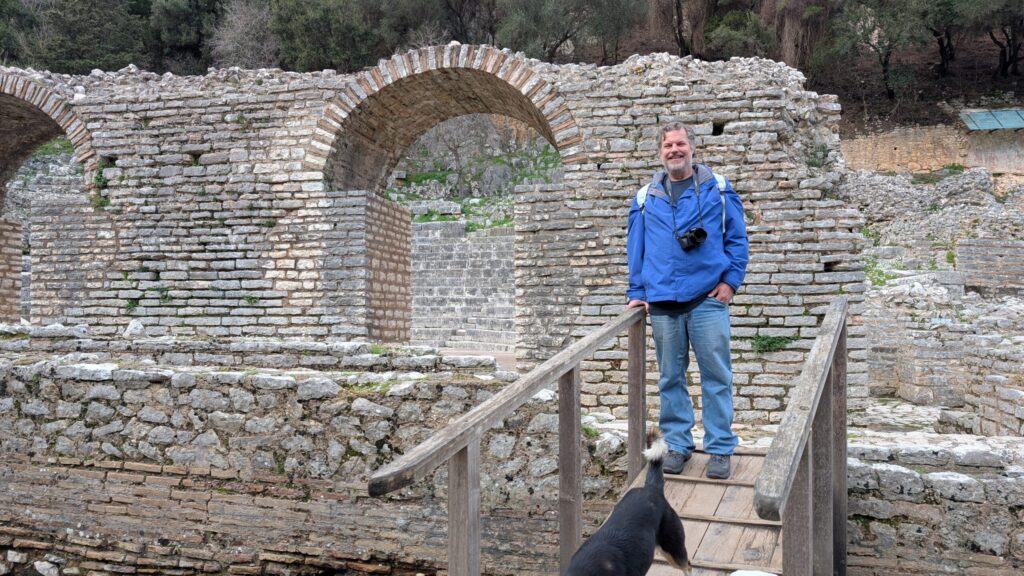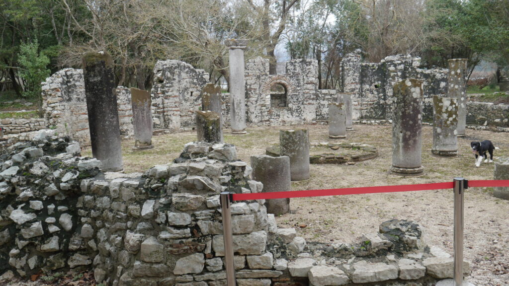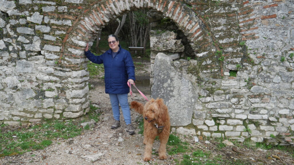 With that all taken care of, we made our way through town, and back out the south end, heading closer to Greece. We were heading to the Butrint Archaeological Site. After having to move Holly to the bus parking lot, we made our way to the entrance, picking up some “guide dogs” along the way. One young male pup, would be blessing and a curse for the 2 kilometer trek around the peninsula.