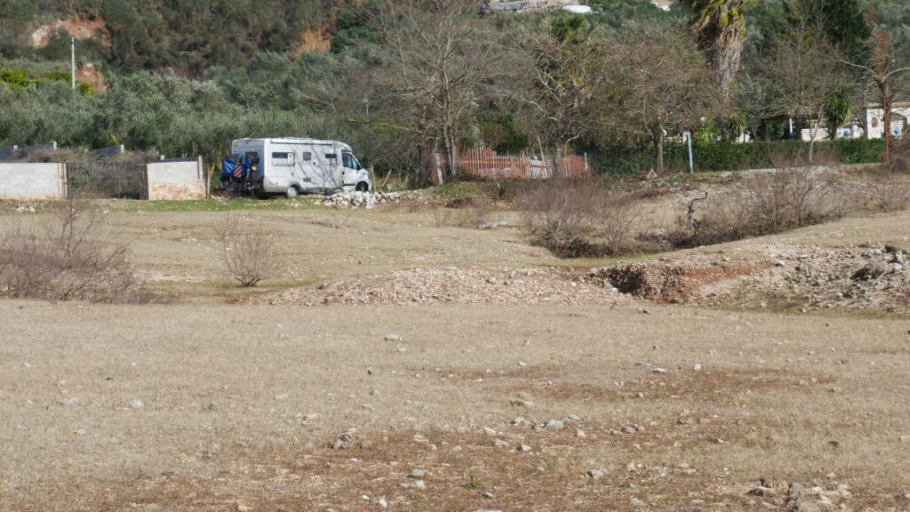 We made our way to the town Borst, Albania. The final kilometer or so was on a tore up, dirt road along the beach, We probably could have parked about anywhere, since everything was closed for the season. We made our way to the marked area, and settled in.