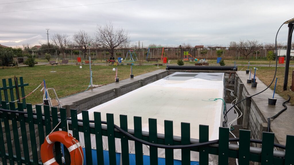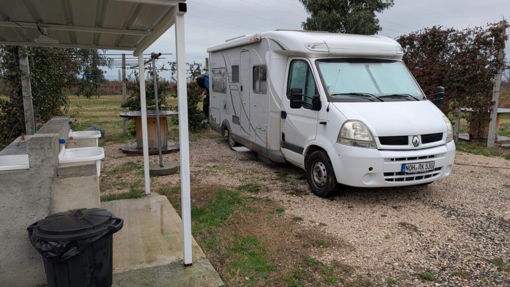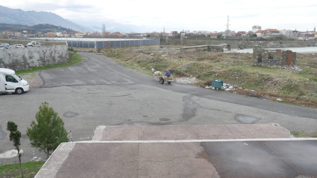 To leave, we had to make our around and through Tirana. We are amazed at the number of apartment building, existing, and being built. Our next stop was another campground, this one in the town of Elbassen. It was far from perfect for us, as it was small, and we were about the biggest camper, at about 8 meters, that could fit in here. The pictures on Park4Night show it very crowded. Thank goodness for it being the off season.