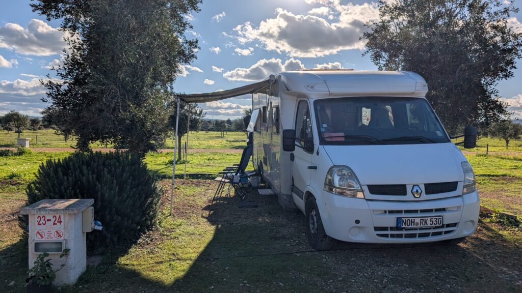 We made our way further south to the town of Villanova. We found a nice campground there that had great views, including getting a bottle of wine with stay. We parked the camper, and I set up our chairs and awning so we could enjoy the sun going down behind the mountains. It was a nice stay, and they had all the services we needed. We wanted to shower, but there showers just weren’t going to work for. They were more like outdoor showers you would use after a day at the beach.