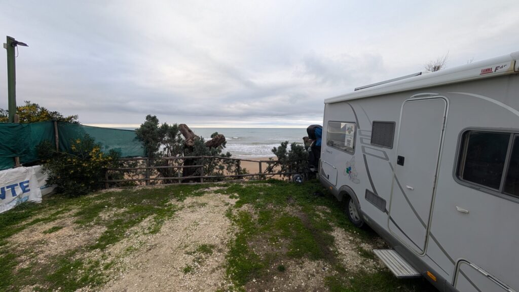 The next day we headed further down the coast, around Bari to San Giorgio, where we parked right on the coast. The waves crashed all night and got more active in the morning.