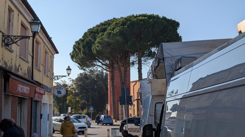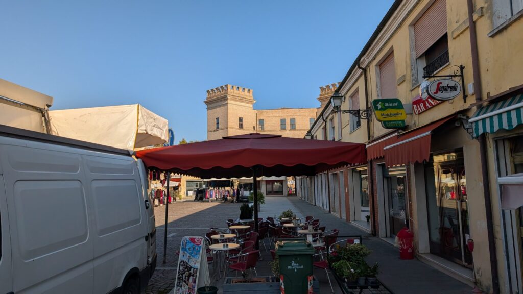 It was a bit of a shock, and not in the plan for the day, so we were a bit off the rest of the day. It wasn’t long that we arrived in the next town, and where we would be parking for the night. We could actually see the Mesola Castle from our spot. It was a popular area, as it filled up with campers. We were also treated to a soccer game. The next morning, Saturday, featured a Town Market, and that put us back on track mentally. We got some great veggies and bread. We spent the rest of the day relaxing.