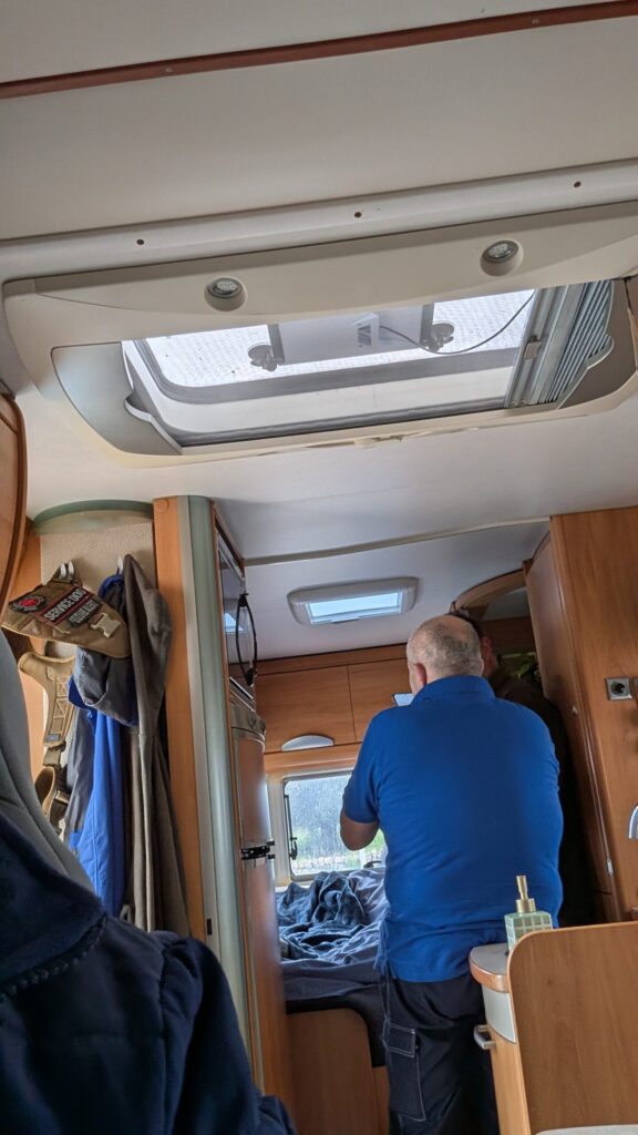 Once in Italy, it was time to take care of our fourth traveler: Holly. Our 8-meter Hymer needed some TLC, specifically a new skylight and a kitchen faucet that had decided to retire early. We headed to Mondo Camping for what we called her “Spa Day.”