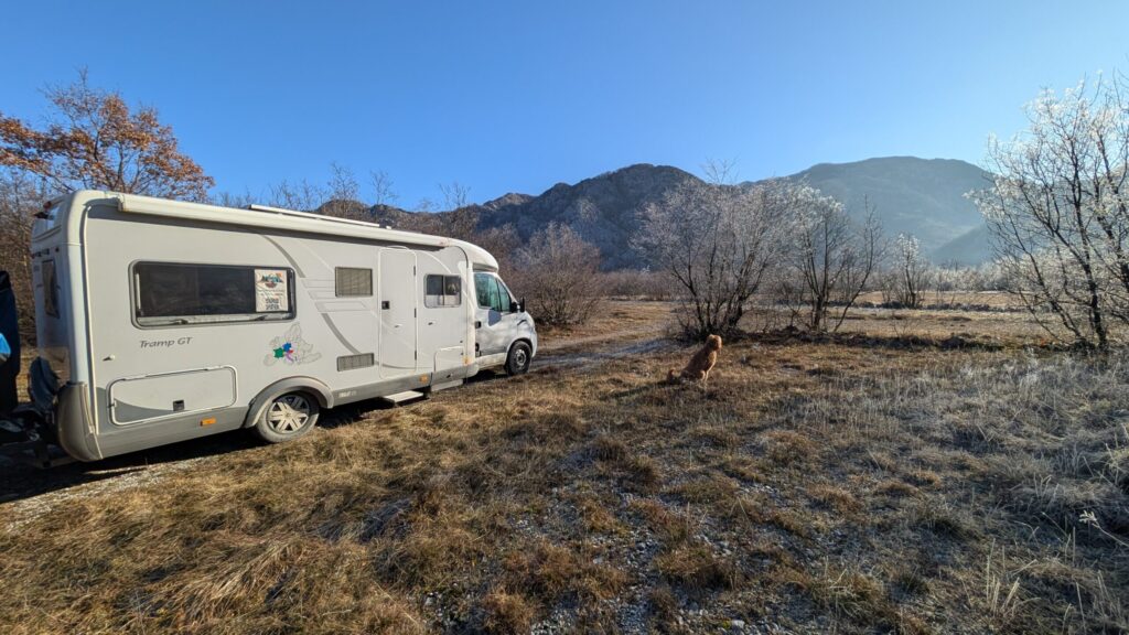 We woke up to a chilly morning, -.5C, just below freezing. We got Holly warmed up and headed near the town of Niksic. We stopped at a campground for the night to get services done. We were heading on up the mountain to a cabin called Forest Rhapsody. We were giving ourselves a break from the camper for the Christmas Holiday.
