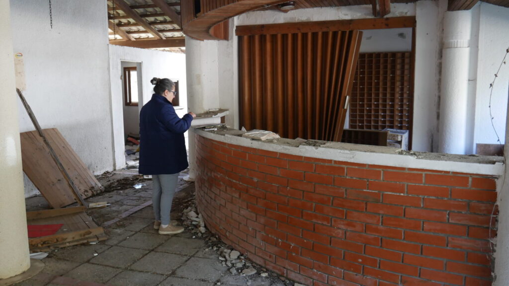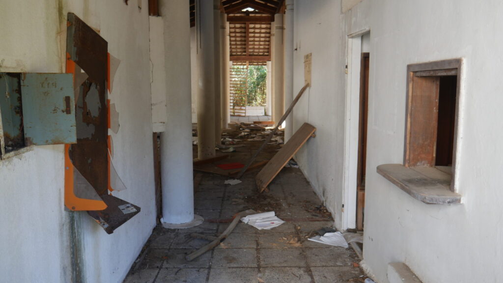 We arrived later in the day, so after dinner, the sun was already tucked behind the mountains, so no time to explore. That would be in the morning. Since we were close to the abandon reception area, we thought we would tour through there first. The next morning, when we awoke, we got ready to hike around the area and discover what had been. But our original plan to visit the reception are was blocked.